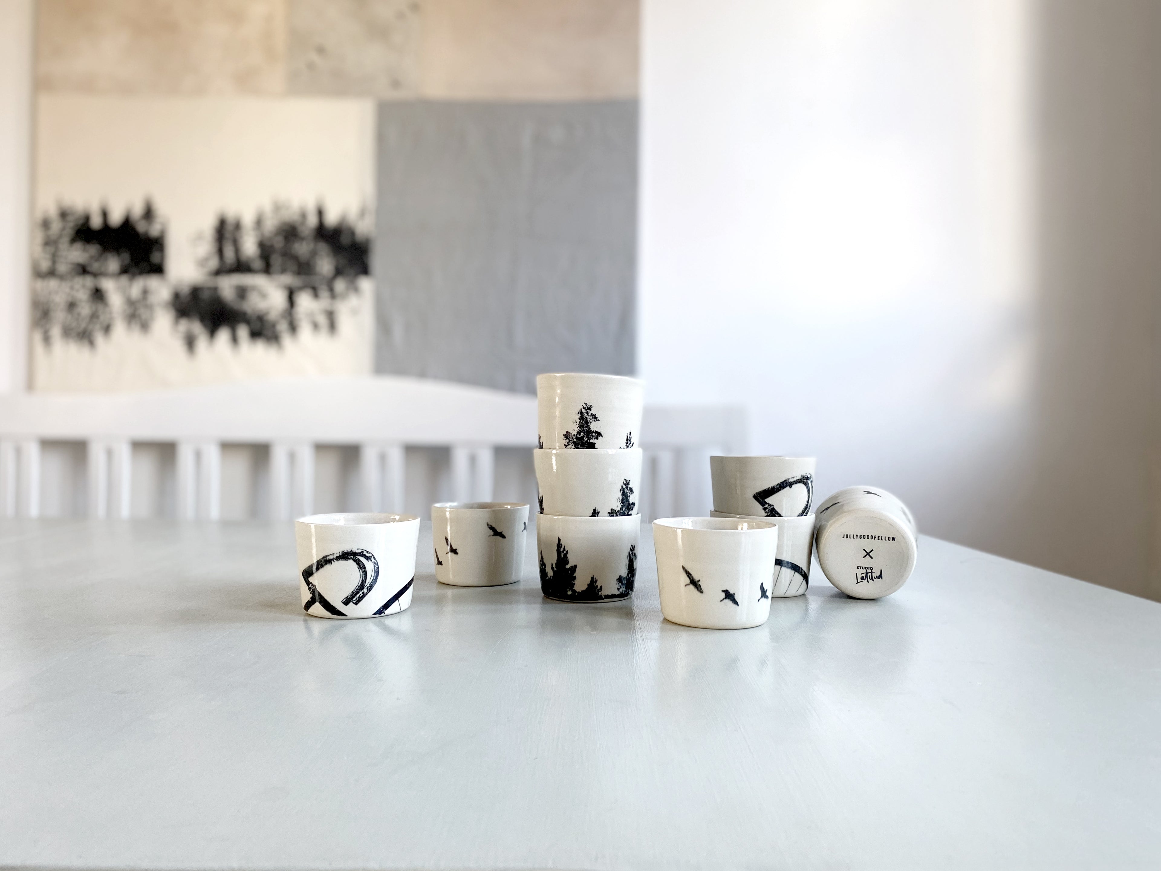 This is a collaboration with Studio Latitud, hand thrown mugs with our screenprinted motifs.