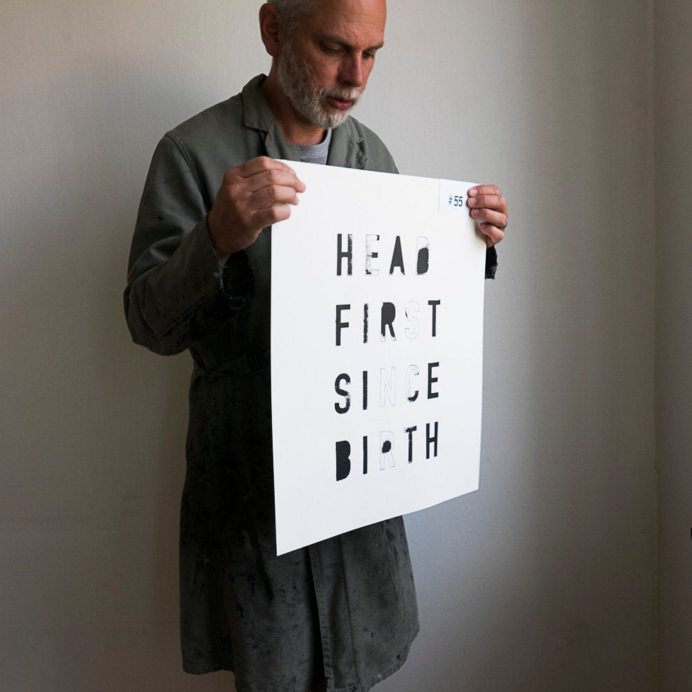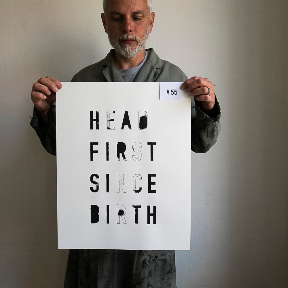 Hier haben Sie „Head First“ mit einer handgeschnittenen Schablone und nicht so viel Farbe gedruckt.