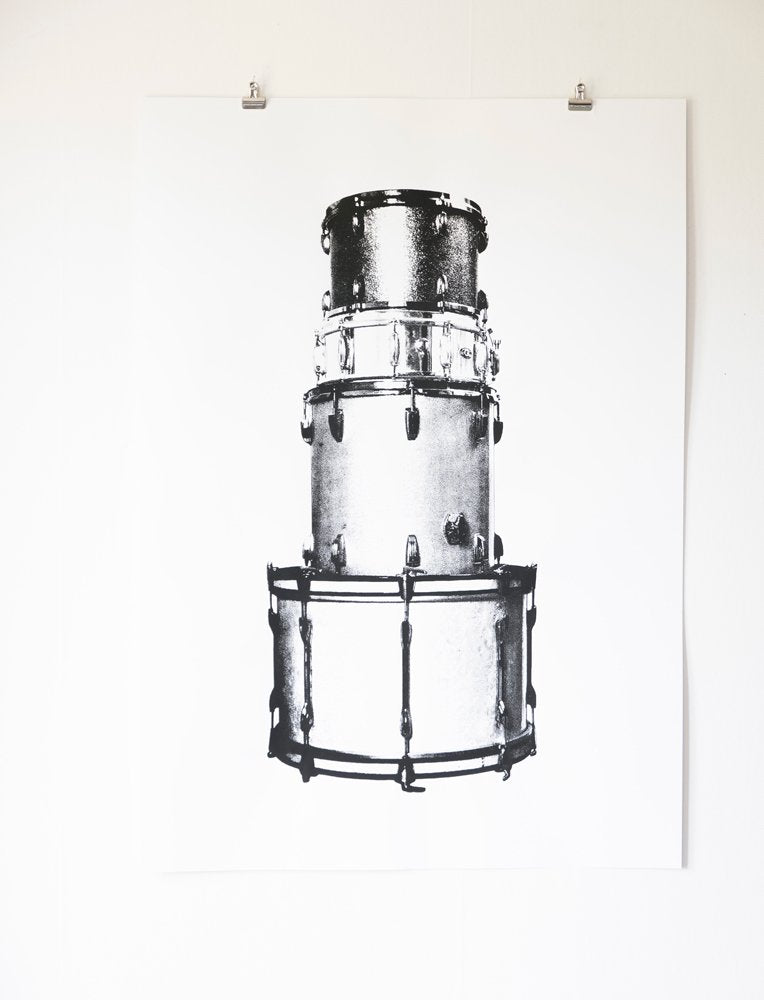 This is Batterie (French for drum kit). A tower of vintage drums in a variety of brands (which you can see on the drum lugs if you are a drum nerd like us).