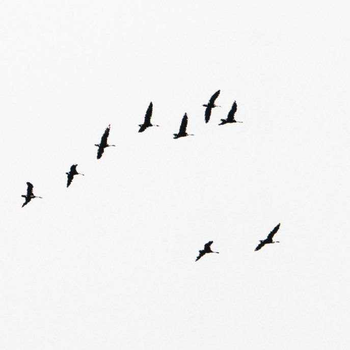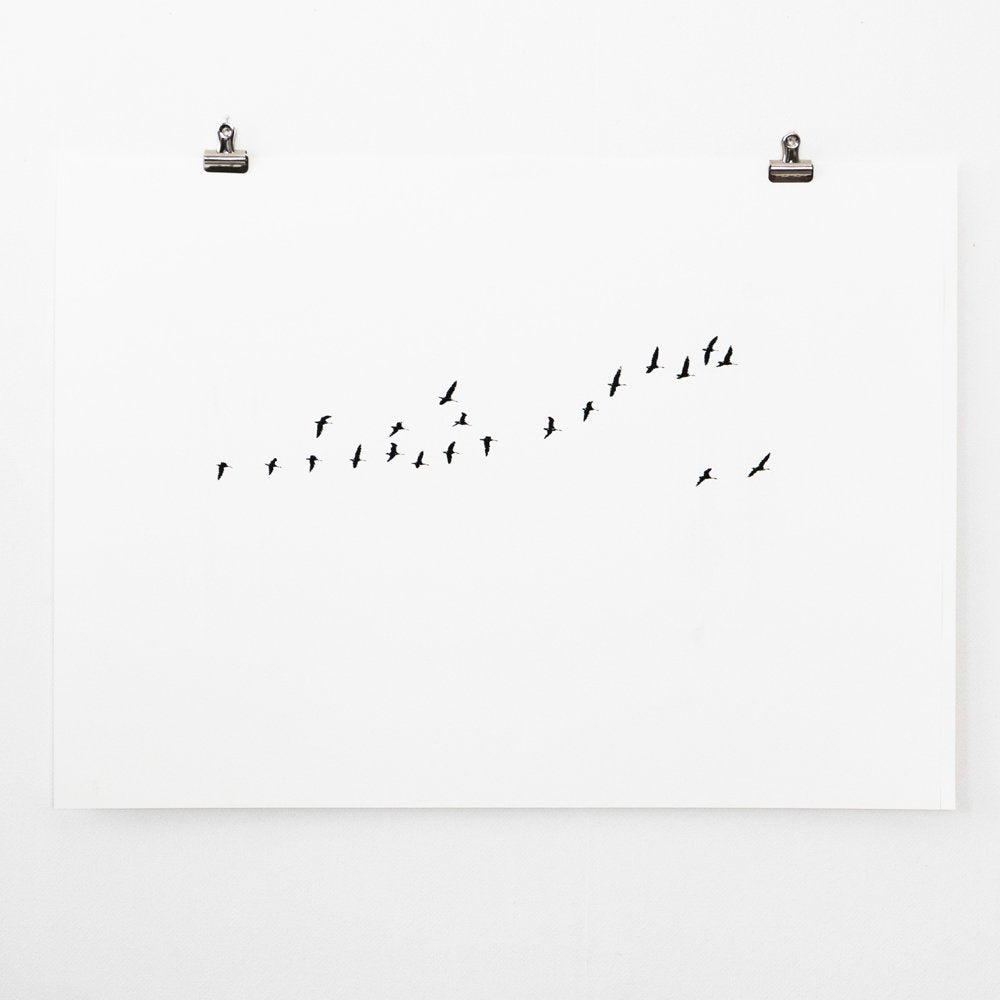 A formation of birds. A lot of birds fly over our home and we managed to capture a few of them.