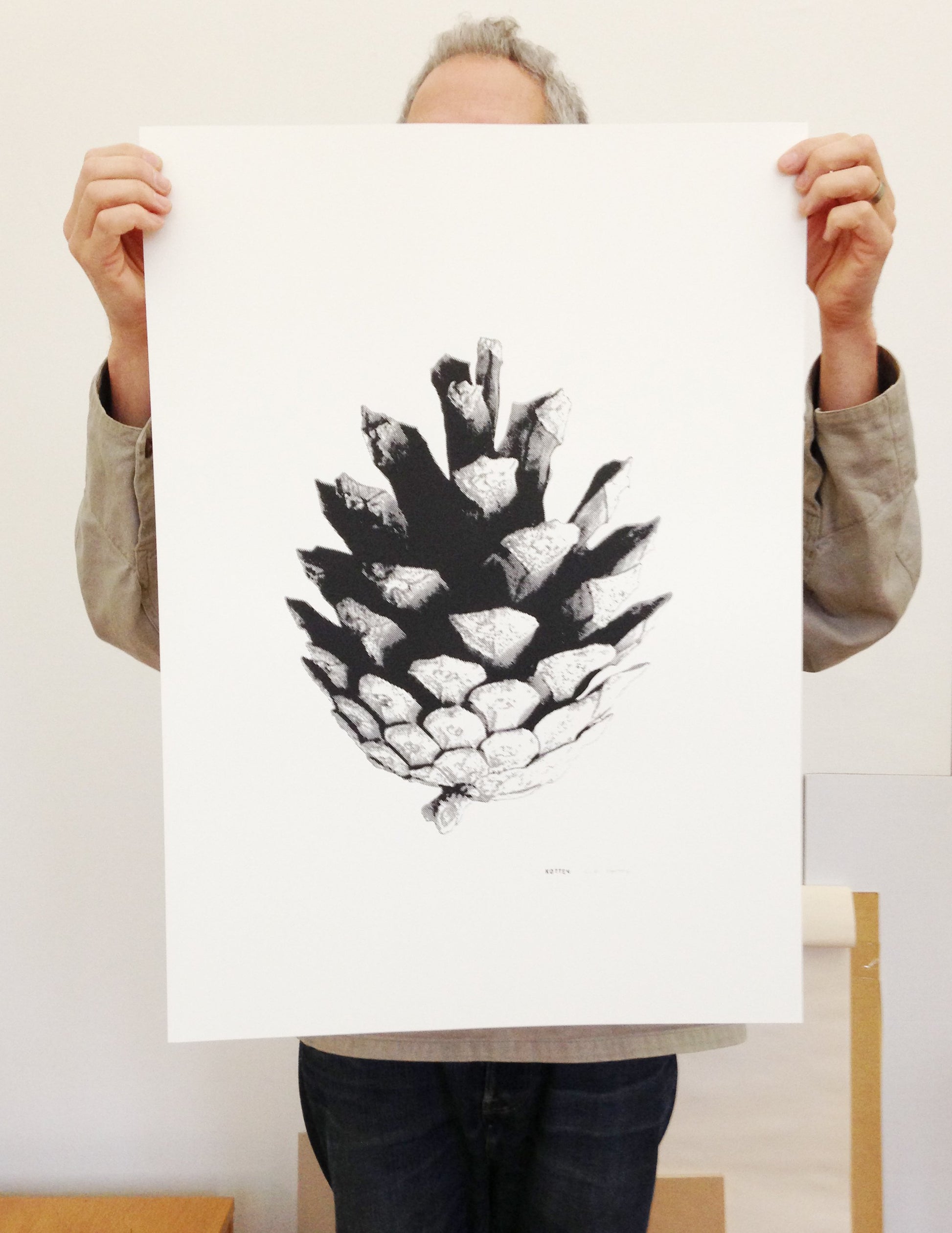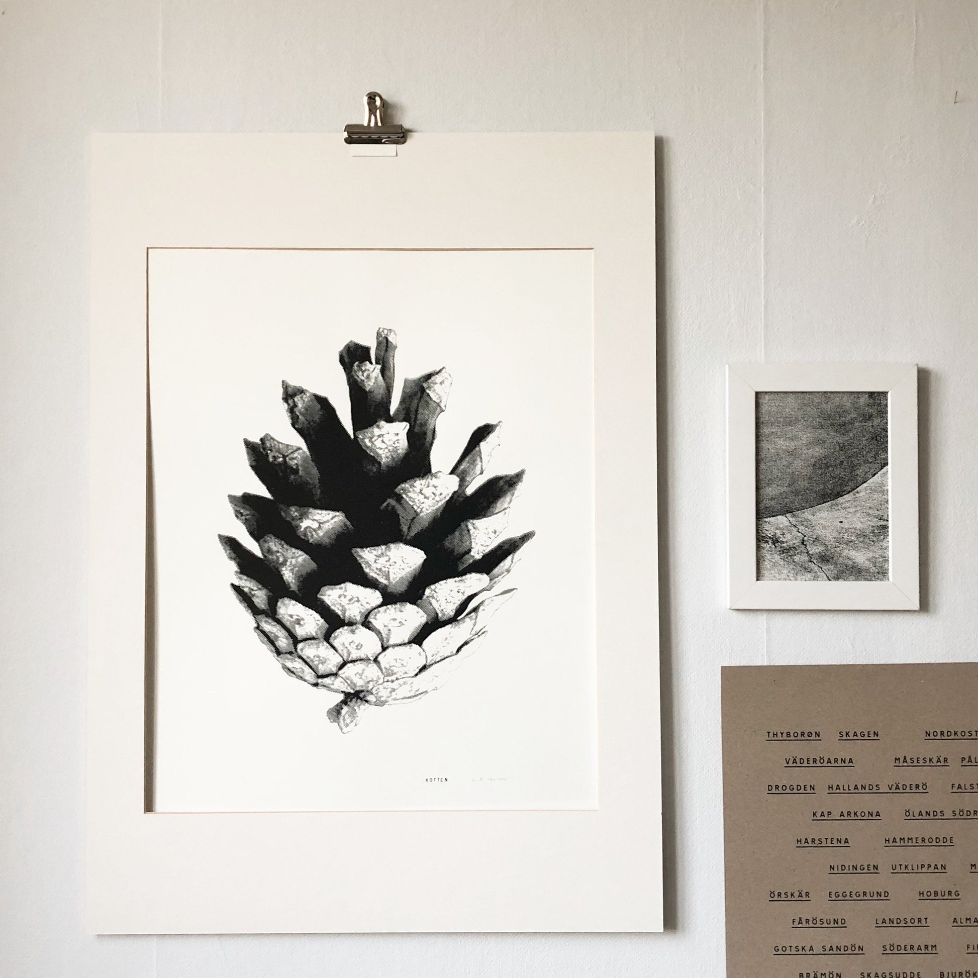 Screen printed by hand on heavy uncoated swedish paper. Available in off-white (Munken Pure 240g) .
