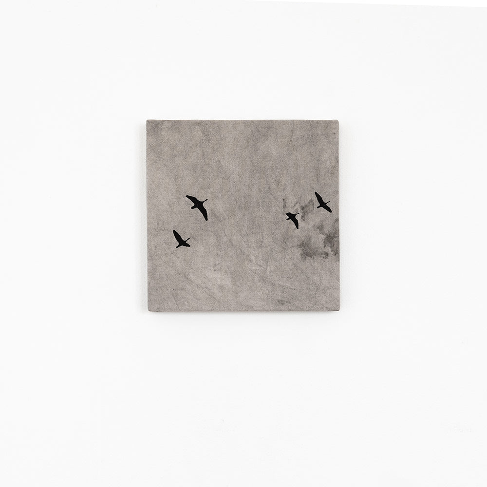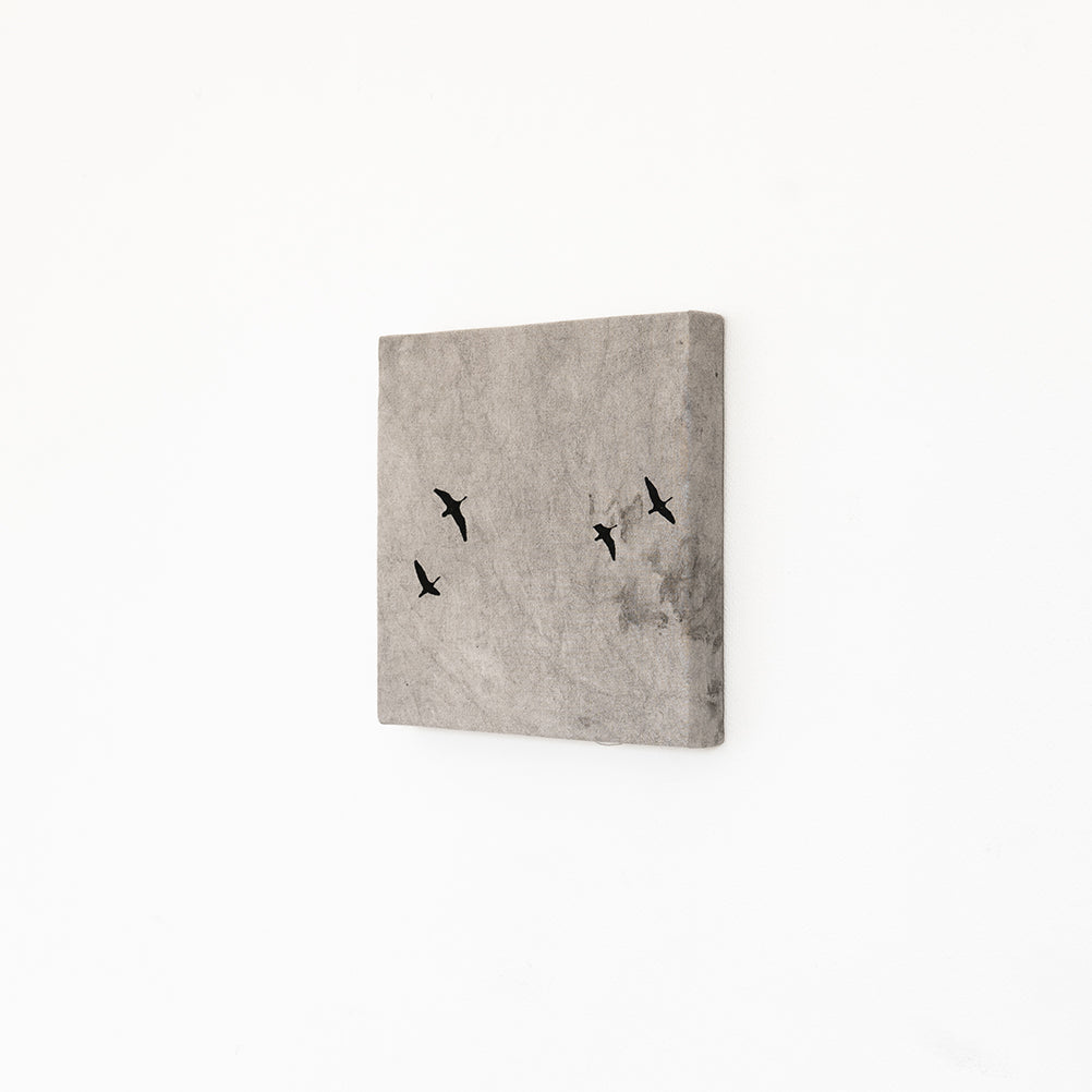 The fabrics in the series On the fly are naturally dyed and screenprinted by hand to form unique pieces of wall art. The motif is birds that fly over our studio.