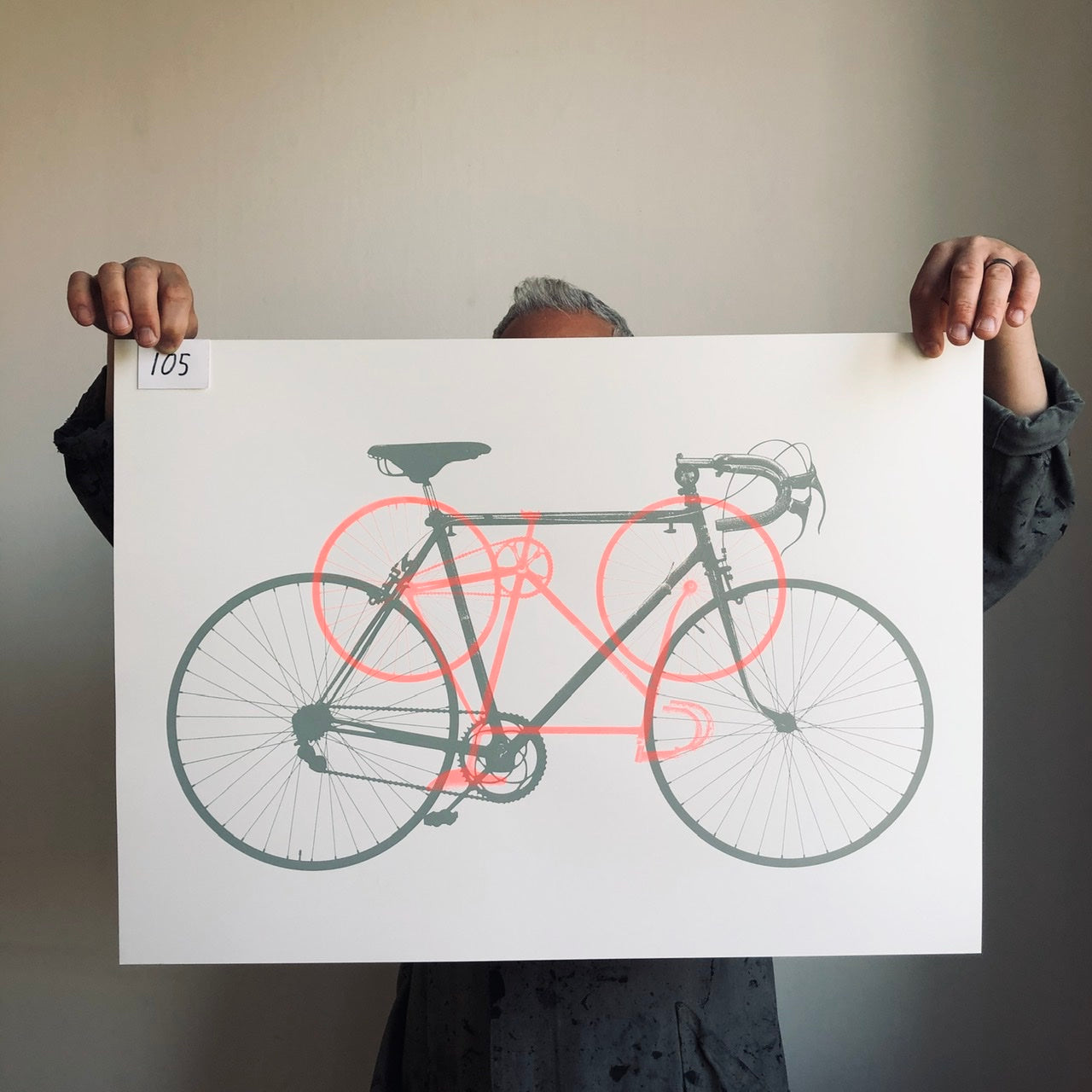 Here you have our ”old bike” Världsmästarcykeln in grey with the newer Ride in Fluorescent Red on top : )