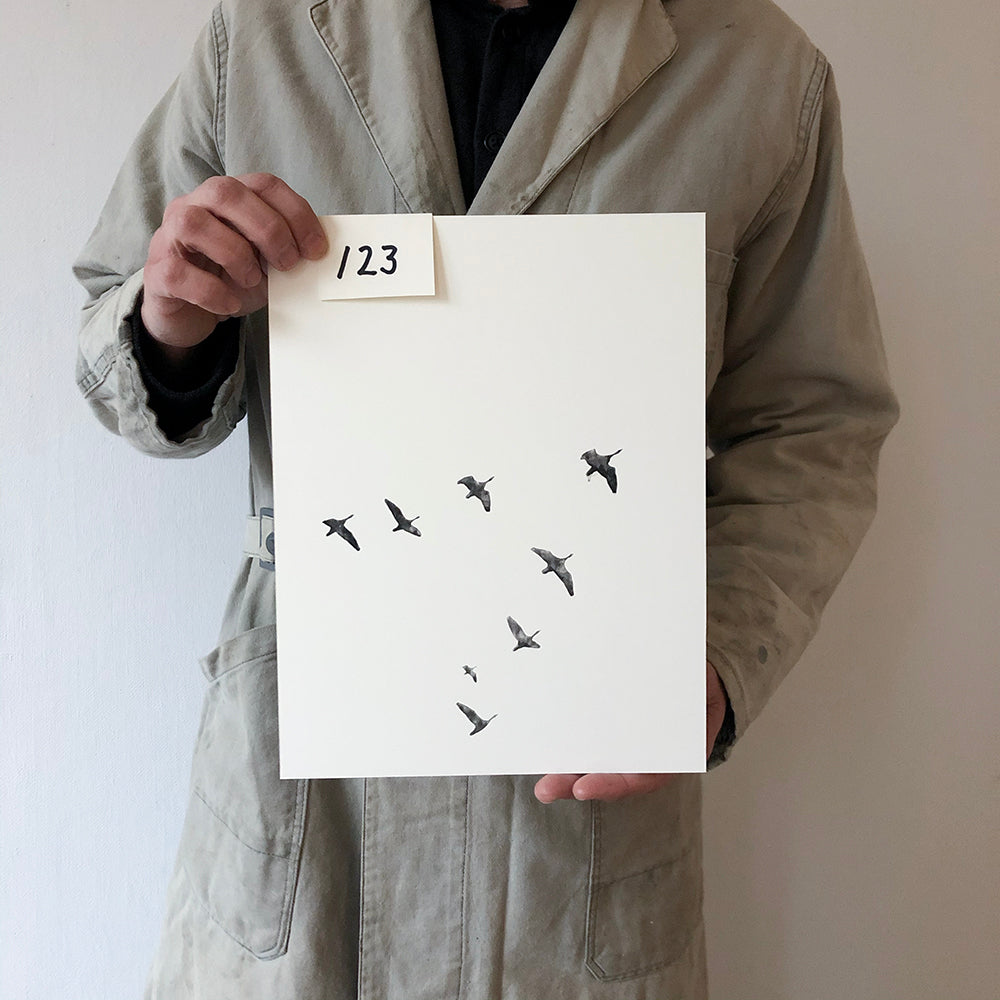 Unique Fellow 123 is a part of our print Flying V. This is printed with added water to get variation in the color and a unique expression.