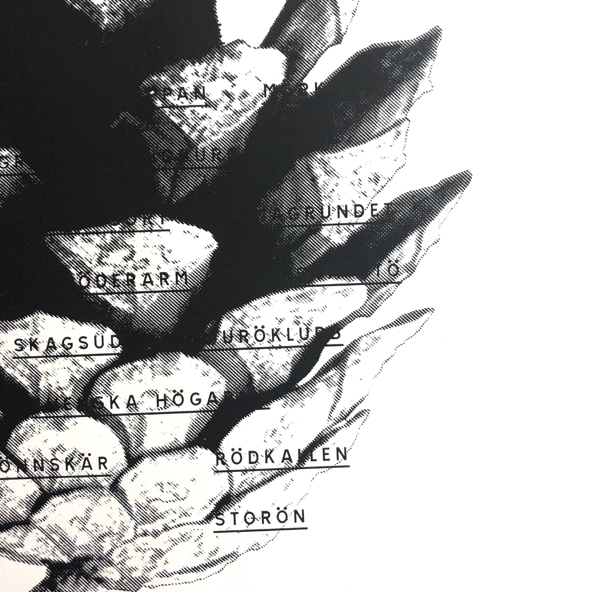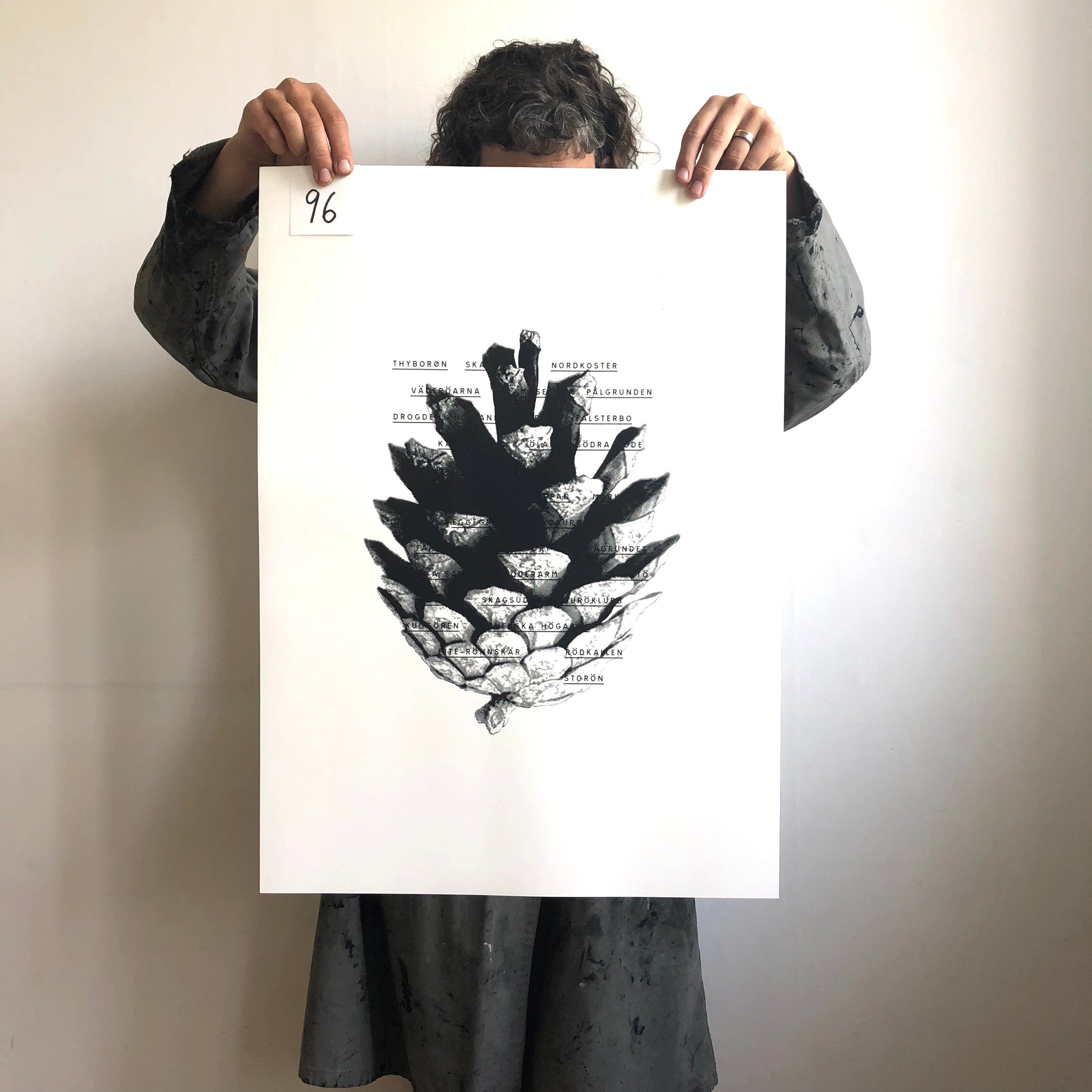 Number 96 in a series of prints where we up-cycle test prints with more layers, we call them uniquefellows. Here you have one of a kind print with the cone, Kotten, together with Observationer.