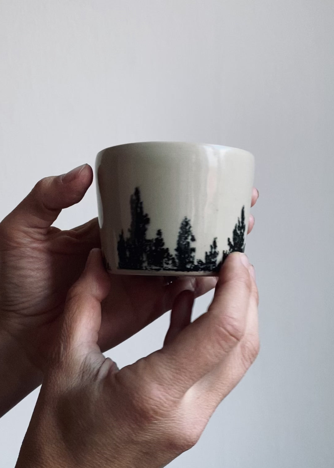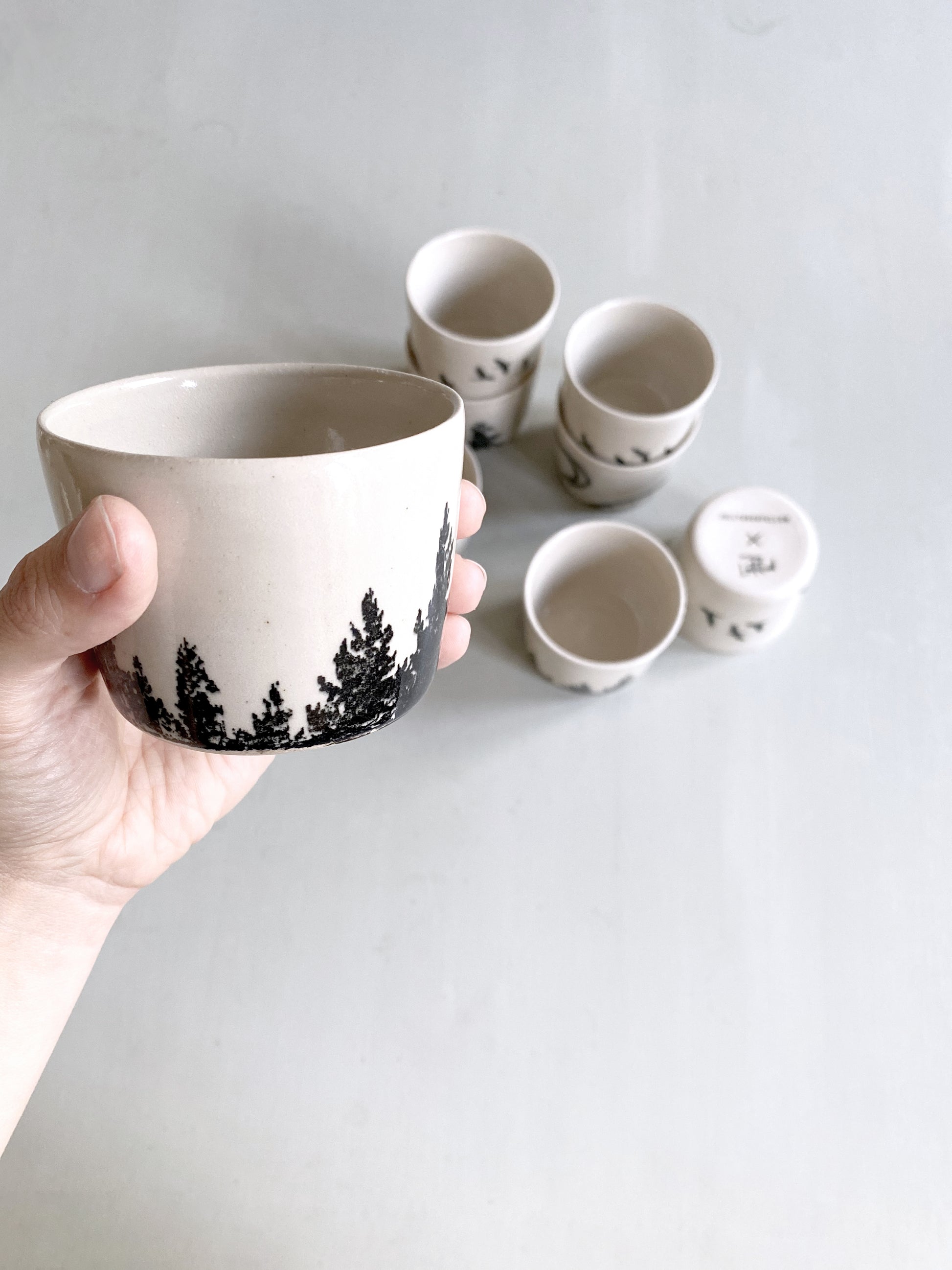 Since throwing, screen printing and applying the print on the mug is made by hand every mug is unique.